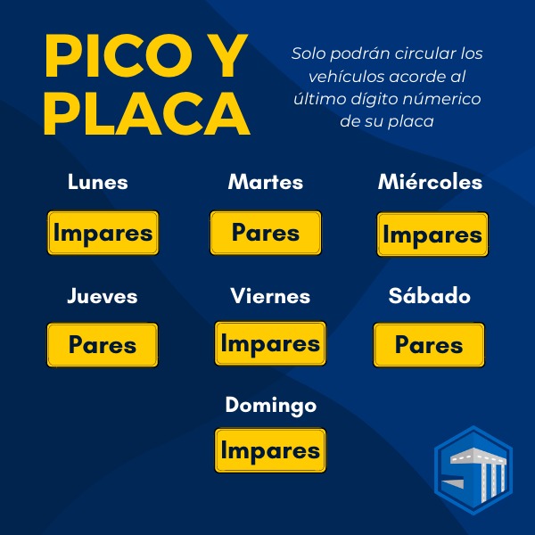 Pico y Placa: Para limitar el tráfico de las motocicletas motocarros y similares, solo podrán circular acorde a al último digito numérico de su placa.