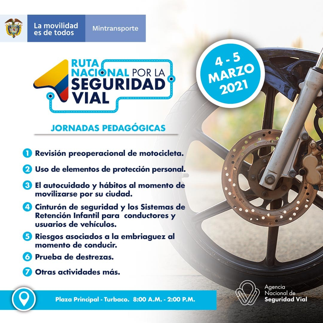 La invitación a inscribirse en la campaña de la Ruta Nacional de la Seguridad vial y asistir a la capacitación cumpliendo con todos los protocolos de bioseguridad, se le recuerda a la comunidad que el uso de tapabocas es obligatorio al igual que mantener el distanciamiento social.